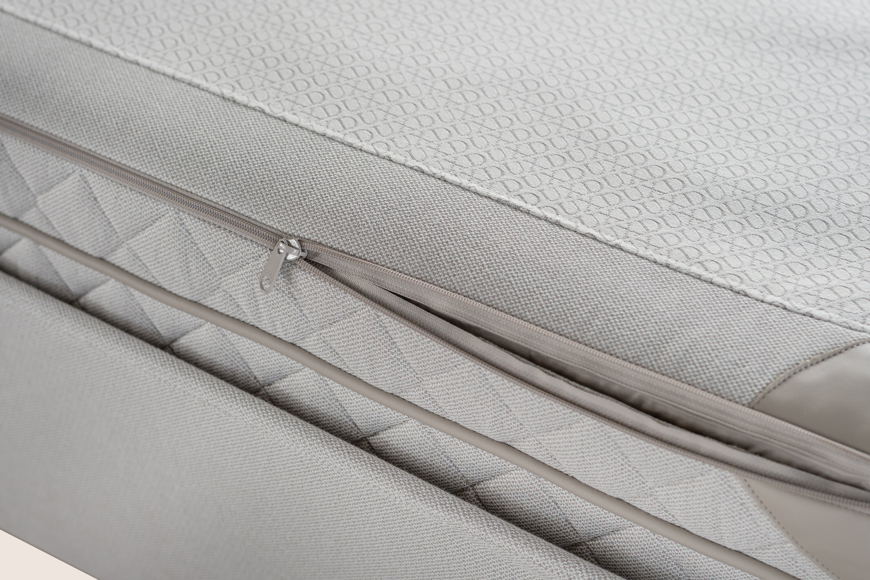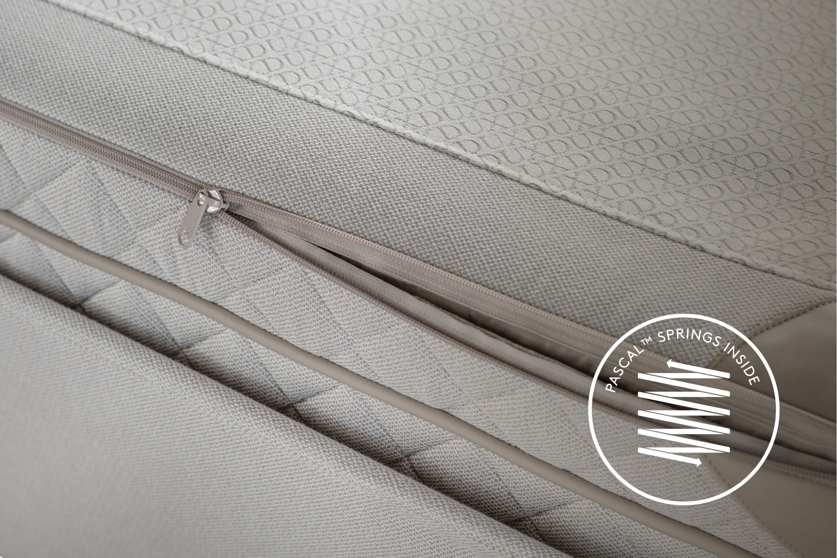 Górną warstwę łóżka DUX z systemem Pascal można rozpiąć, aby odsłonić sześć wymiennych kaset sprężynowych; po trzy z każdej strony. Kasety można przekładać w zależności od wielkości, kształtu i potrzeb.