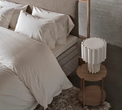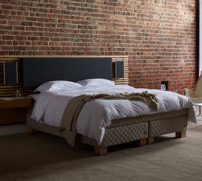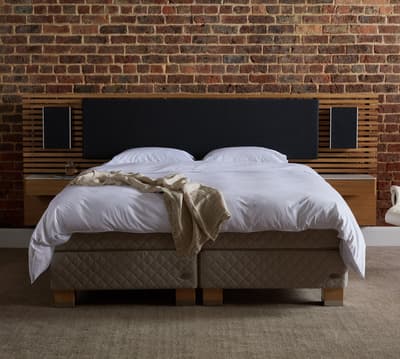 Starannie wykonane wezgłowie z litego drewna, wyposażone w innowacyjną technologię Bang & Olufsen. Zaprojektowane i opracowane wspólnie przez Bang & Olufsen oraz DUX.