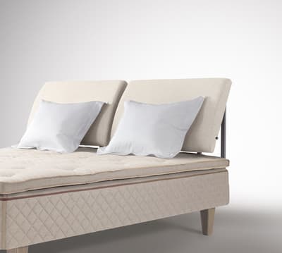Niższe, regulowane wezgłowie z podgłówkami w kształcie poduszek, doskonałe do czytania.