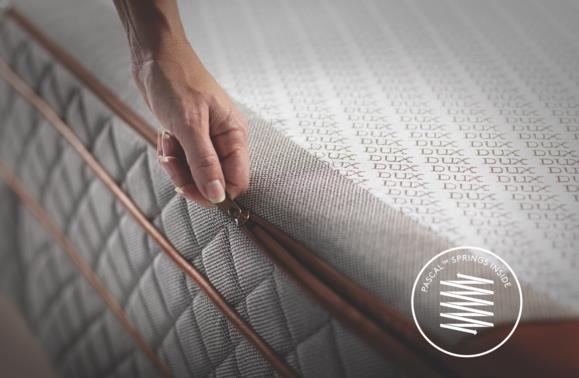 DUX 303 to nasze najnowsze łóżko z materacem ze zintegrowanym systemem Pascal, który umożliwia dostosowanie stref komfortu do indywidualnych potrzeb. To nasz pierwszy bezramowy materac, który można umieścić w ramie łóżka. Wysoki poziom komfortu wynika ze współdziałania dwóch innowacji DUX — systemu sprężyn DUX z tysiącami połączonych ze sobą zwojów oraz naszego unikalnego systemu Pascal.