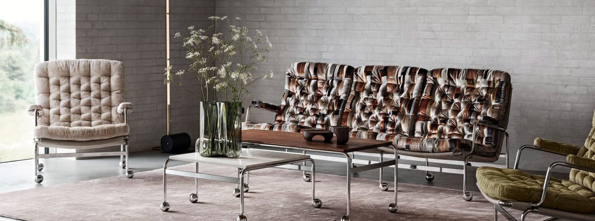 Fotel Karin 73, nazwany tak na cześć roku, w którym debiutował, był pierwszą generacją oryginalnego fotela Karin zaprojektowanego przez Bruno Mathssona. Obecnie poszerzyliśmy tę kolekcję o 3-osobową sofę charakteryzującą się takim samym klasycznym i eleganckim wzornictwem. Ciesz się luksusowym komfortem dzięki wypchanym poduszkom, spoczywającym na chromowanej ramie z siatką podtrzymującą. Oprócz sof i oryginalnego fotela, seria Karin 73 oferuje również podnóżek i stoliki dostępne w wielu rozmiarach.