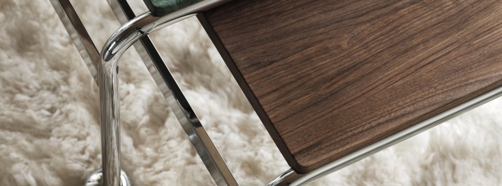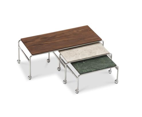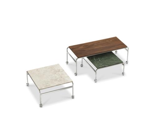Zaprojektowany na bazie oryginalnego stolika Bruno Mathssona, został stworzony jako dodatek do zaprojektowanego przez niego klasycznego fotela. Opcja ta zapewnia największą ilość miejsca w stosunku do zajmowanej powierzchni, jednocześnie zachowując elegancką estetykę kolekcji Karin. Na chromowanej ramie może spocząć blat wykonany z ekskluzywnego marmuru, wapienia lub drewna orzechowego.