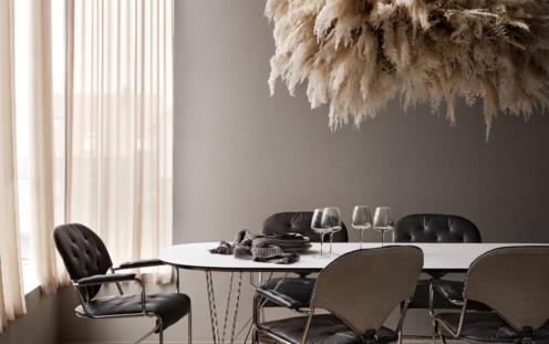 Owalny stolik kawiarniany zachęcający do rozmowy i kontaktu wzrokowego ze wszystkimi gośćmi. Dostępny również w dwóch innych wersjach, jako stół do jadalni z dwoma rozkładanymi blatami i mniejszy stolik kawiarniany.