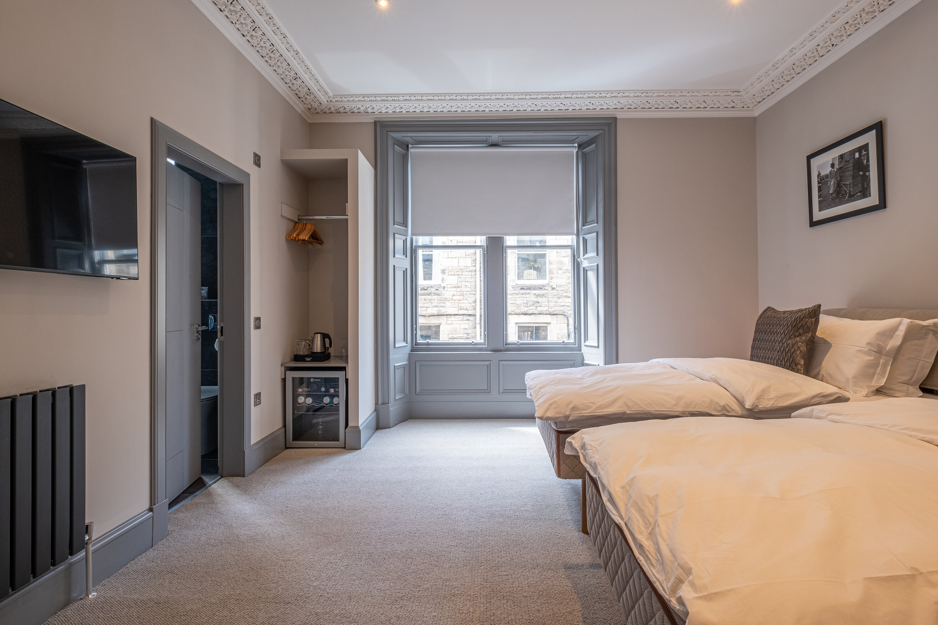Arran oferuje luksusowe, nowoczesne zakwaterowanie składające się z 8 pokoi dla gości. Na parterze, w pełni odnowiony obiekt oferuje 2 luksusowe apartamenty: Garden Suite z dostępem do ogrodu oraz Murray Suite, który jest największy w St Andrews. Jest również jeden pokój King/Twin z widokiem na ogród (pokój 4). Na pierwszym piętrze Morris Suite oferuje duży luksusowy pokój z typu King/Twin z łazienką i częścią wypoczynkową dla dodatkowego relaksu! Na tym poziomie pokój 5 oferuje duże łóżko typu King/Twin z oszałamiająco dużą łazienką. Na najwyższym piętrze znajduje się pokój dwuosobowy Wee Double, który posiada prywatną łazienkę z prysznicem po drugiej stronie korytarza, a także dwa kolejne pokoje typu King/Twin z łazienką (pokój 7 i 8). Hotel Arran znajduje się 275 jardów od pierwszego pola golfowego Old Course oraz 5 minut spacerem od wszystkich sklepów, barów i restauracji w St Andrews.